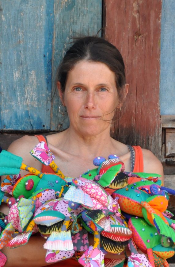 Aujourd’hui en Corrèze, je me sens chiffonnière, transformant les vieux vêtements en fleurs, personnages, cabanes et autres curiosités. Je partage savoir-faire et astuces de recyclage au gré des festivals, écoles, stages et lieux d’expositions.