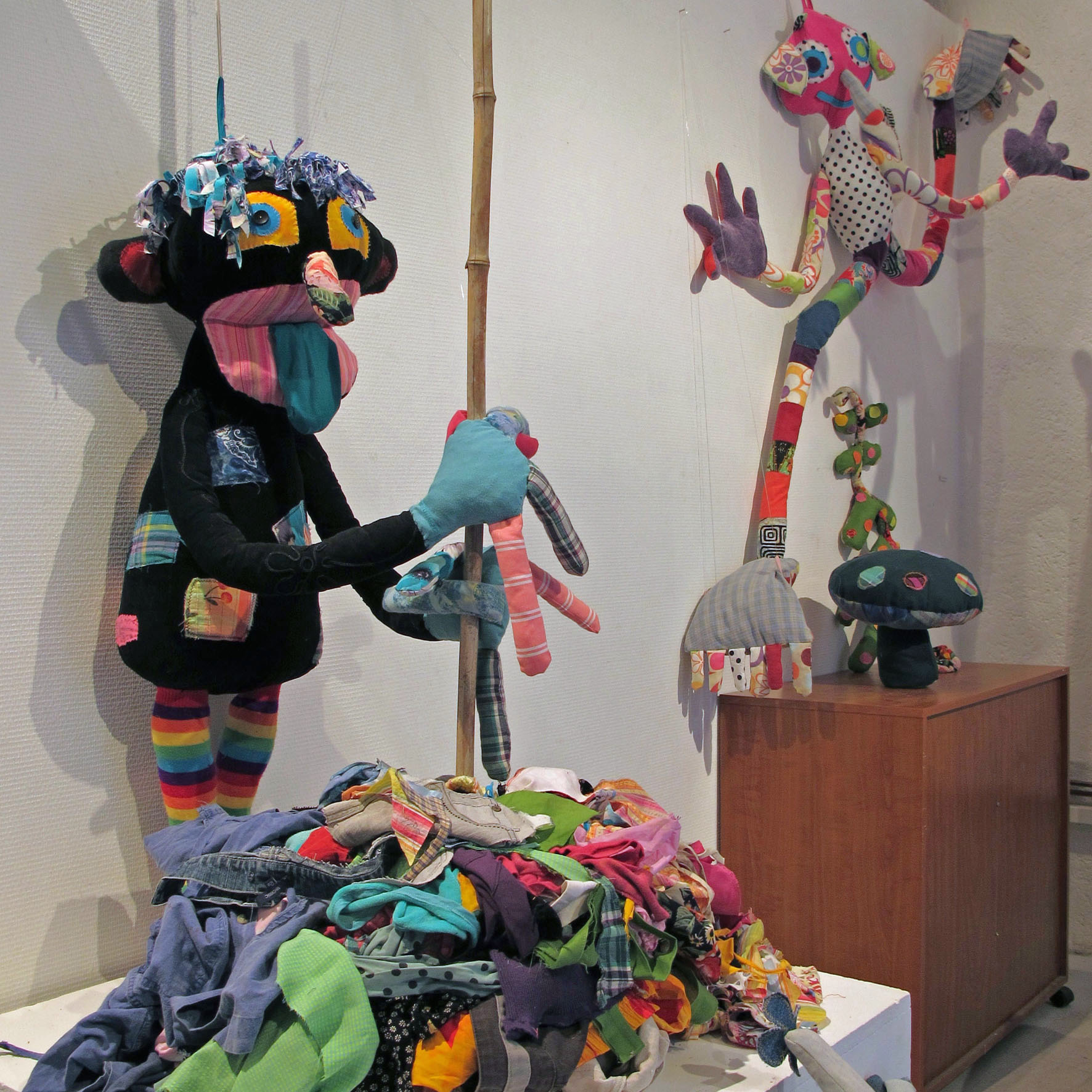 Une quinzaine de grands personnages mis en scène, décors divers en tissu recyclé, mallettes pédagogiques sur le cycle de vie des vêtements, petit questionnaire de visite pour les enfants.