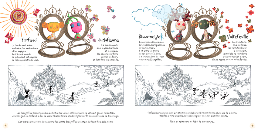 Guidés par Farfesol, le nomade de la bande, les Escogriffes quittent leur contrée et leurs habitudes saisonnières pour une GRANDE EXPEDITION SOLAIRE. La découvertes de régions mystérieuses voire inquiétantes va renforcer leur amitié et l’envie de créer ensemble. Au retour de voyage, ils sont rejoints par d’étranges visiteurs, porteurs d’un message : un danger imminent les guette…